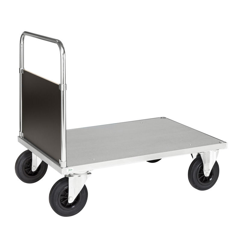 Plattformsvagn Hasslö, utan gavlar, 1200x800 mm, elförzinkad. Robust industrivagn för tuff hantering. Kraftig stålrörskonstruktion med flak och hyllor av elförzinkad plåt och sarger av MDF direktlaminat för tuff hantering.