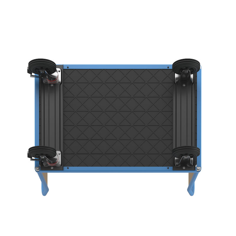 - Hjul: 2 fasta hjul, 2 länkhjul med broms