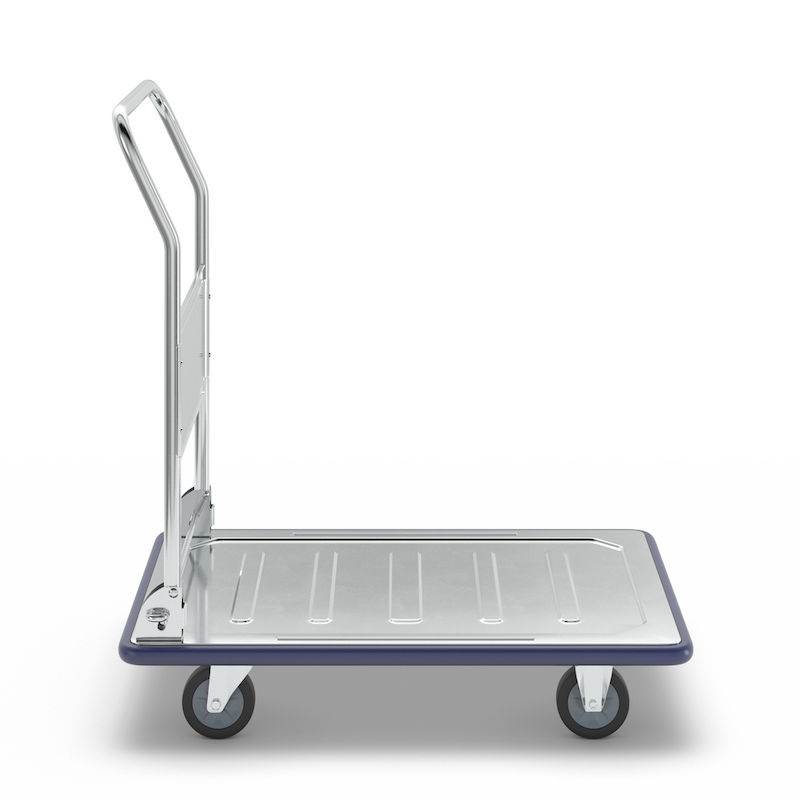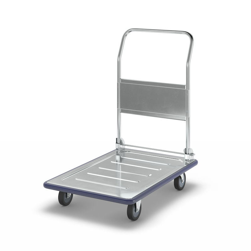 Plattformsvagn Nino, lastkapacitet 300 kg, LxB 925 x 625 mm. 2 länkhjul och 2 fasta hjul, Ø 125 mm, kullager. Polyuretanhjul som inte lämnar märken.