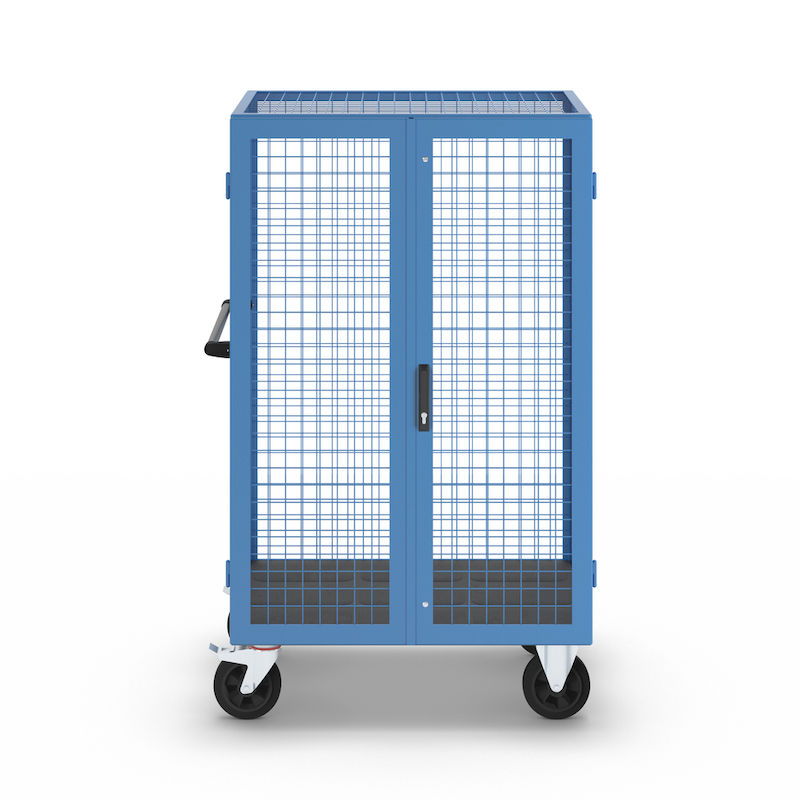 Låsbara dubbeldörrar med spanjolettlås och cylinderlås med huvudnyckel skyddar effektivt dina varor mot obehörig åtkomst. Denna säkerhetsfunktion gör skåpvagnen till ett idealiskt val för förvaring av känsliga lagervaror. Alla hyllvagnar är utrustade med identiska lås, men olika låsalternativ kan tillhandahållas på begäran.