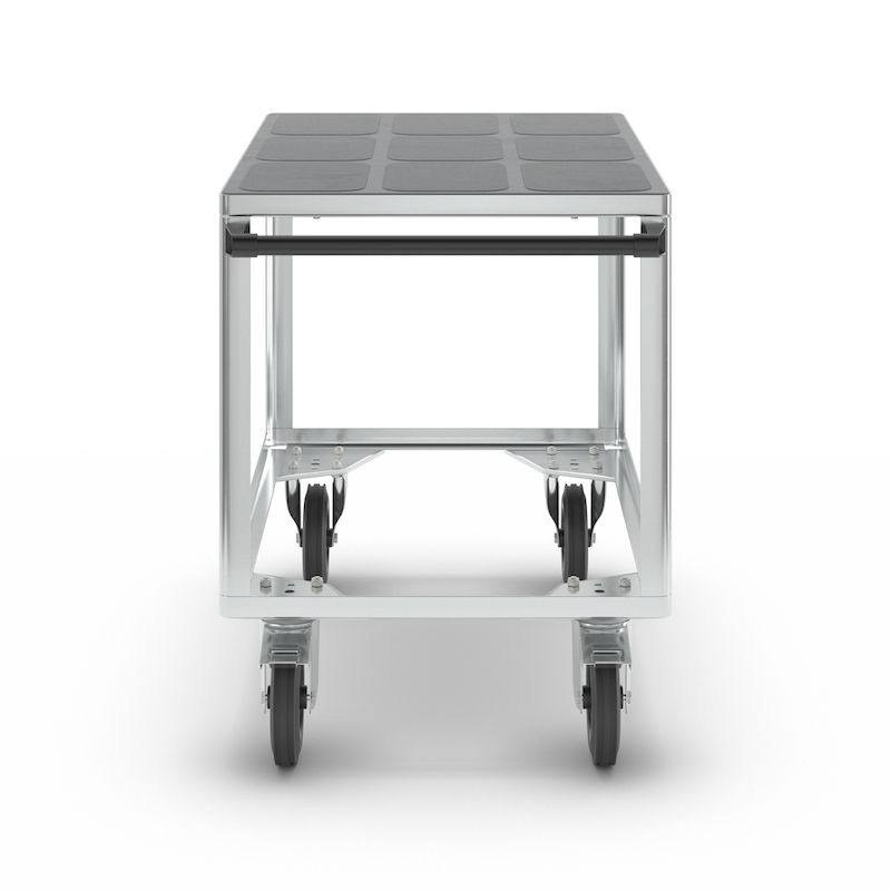 Bordsvagn Industri, 1 hyllplan av plast, hyllplan 1050 x 700 mm, galvaniserat stativ. Lastytor i ett plan. Våningshöjder 275 / 895 mm. Skjutbygel som klickas fast.