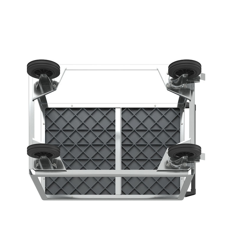 - Hjul: 2 bromsade länkhjul, 2 fasta hjul
