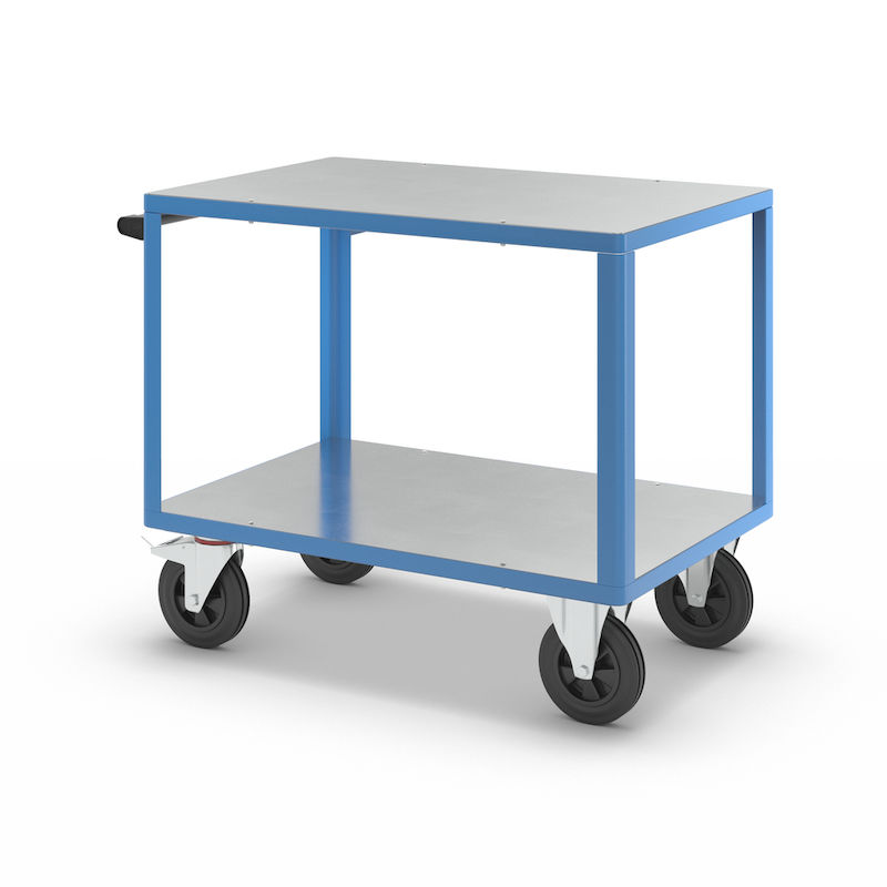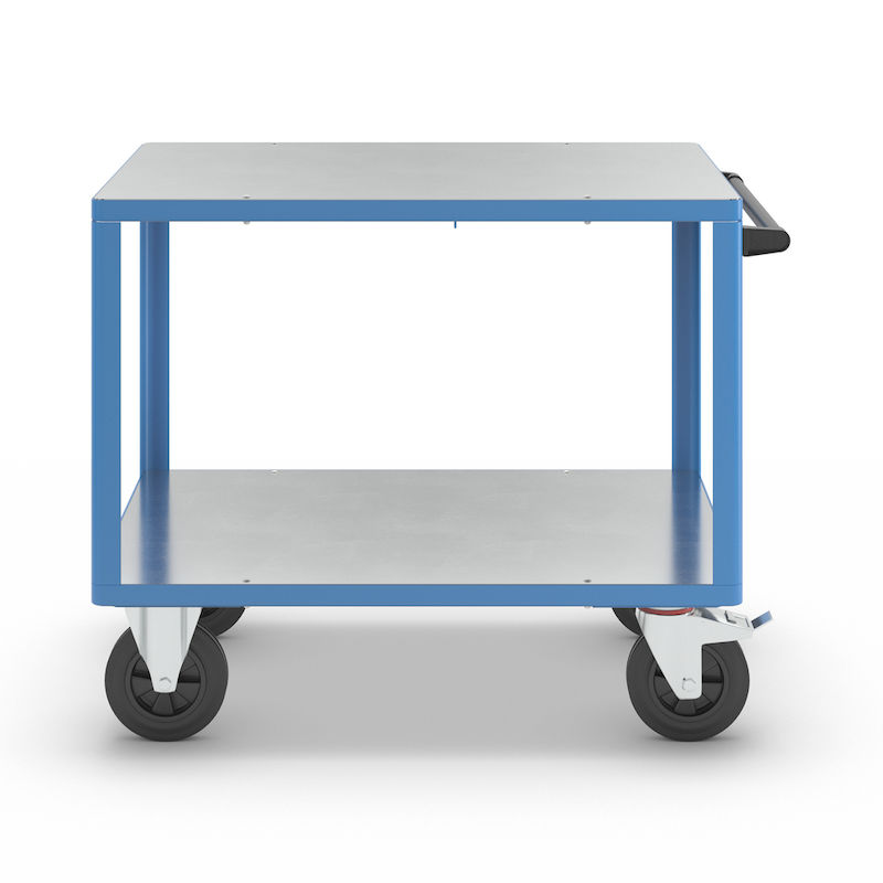Bordsvagn Industri Industri, 2 hyllplan med galvaniserade upplag av stålplåt, hyllplan 1050 x 700 mm, stativ ljusblått. Bordsvagnen är ett perfekt hjälpmedel i det dagliga arbetet, särskilt vid