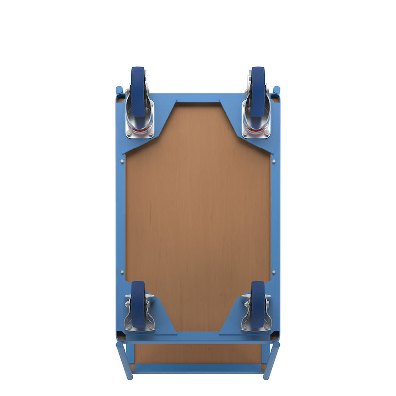 2 länkhjul och 2 fasta hjul, Ø 160 mm, rullager, gummihjul som inte lämnar märken. Länkhjul med broms.