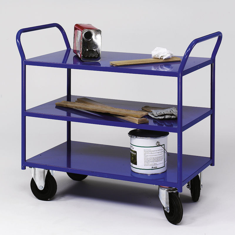 Hyllvagn 400 kg, LxBxH 1070X550X1000 mm, 2 hyllplan, blå. Tung hyllvagn tillverkad i pulverlackerad plåt.