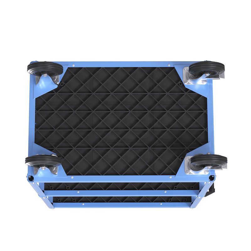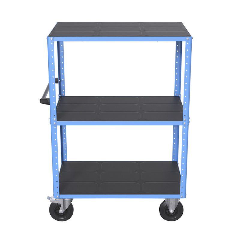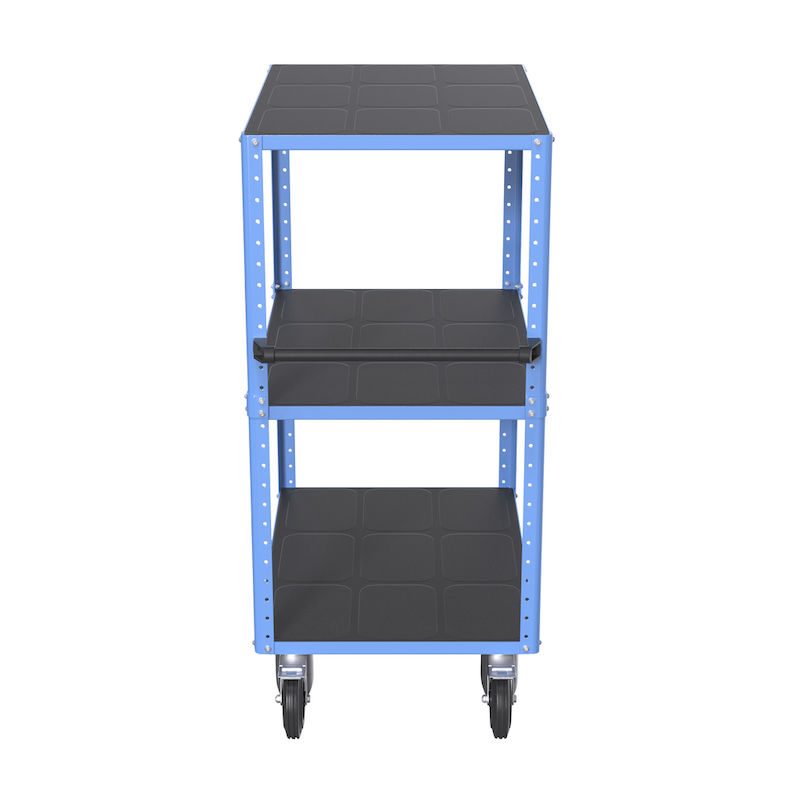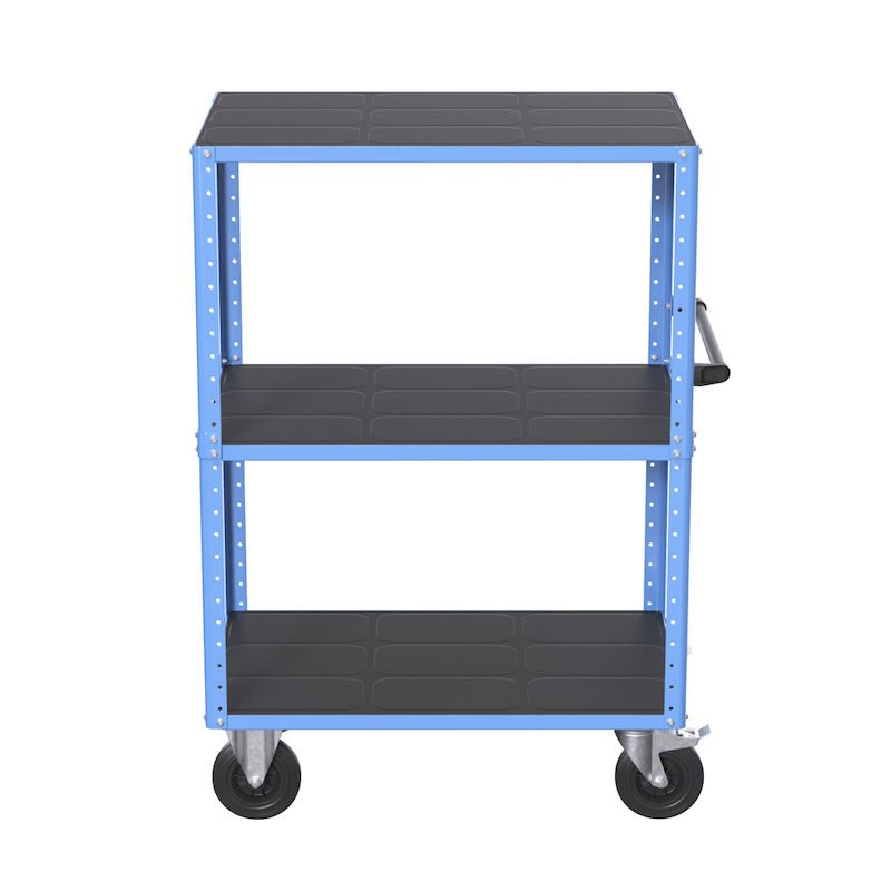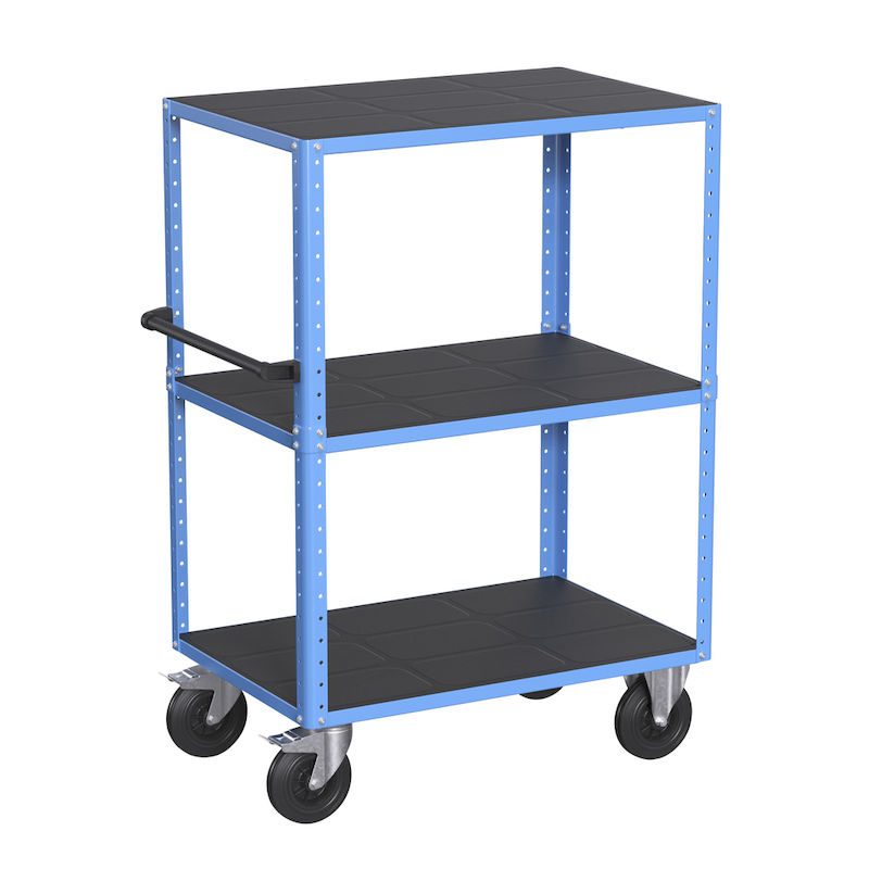 Hyllvagn CustomLine, 3 hyllplan, ljusblå RAL 5012, massivgummi