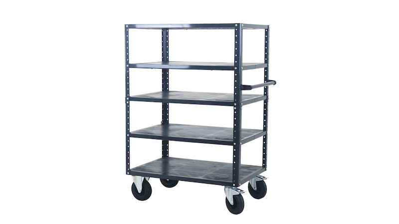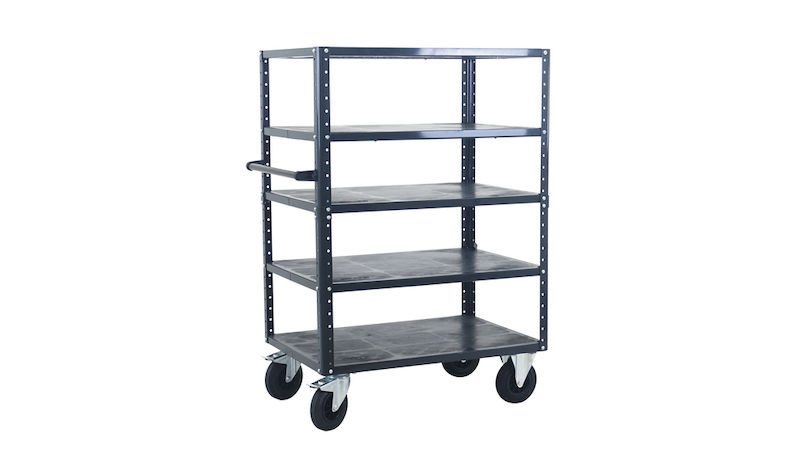 Hyllvagn CustomLine, 5 hyllplan, antracitgrå RAL 7016, massivgummi. Hyllvagnen eurokraft pro är en perfekt lösning för individuella behov inom industri och produktion. Den innovativa produkten i vår mångsidiga produktserie CustomLine står för flexibilitet och modulanpassning med olika kombinationsmöjligheter och tillbehör. Hyllvagnen är en tillförlitlig partner i det dagliga arbetet. Den anpassas flexibelt efter din verksamhets behov och effektiviserar dina processer.