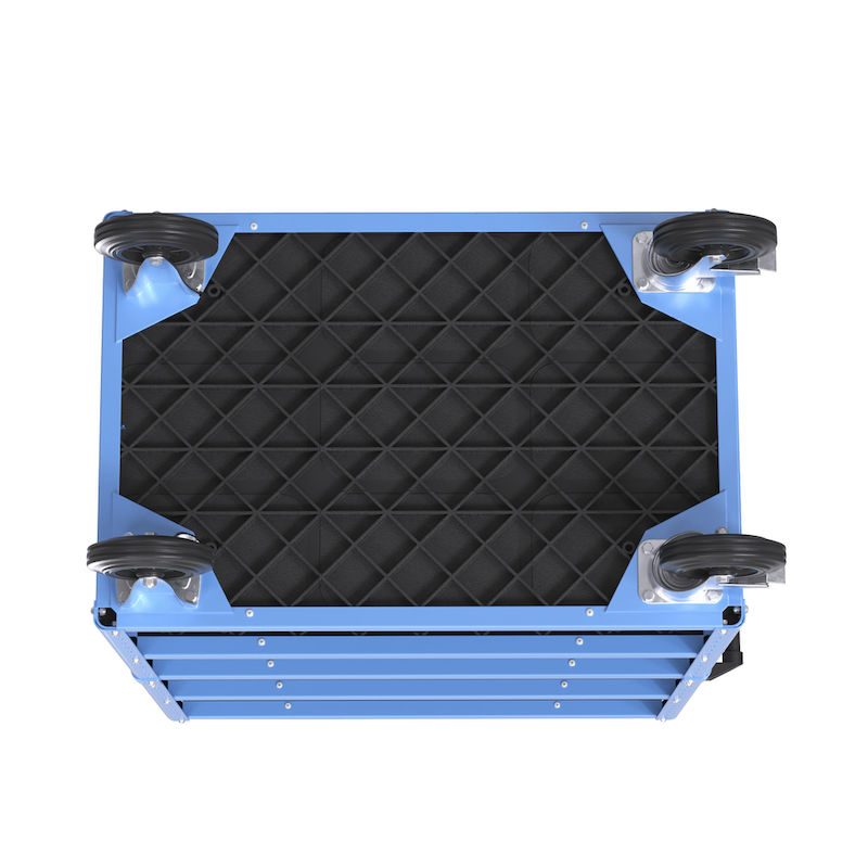 Det flexibla CustomLine-systemet är mycket användningsbart och lätt att anpassa efter arbetsflödet på ditt företag. Se till att du är förberedd och kan agera snabbt när processer och uppdrag ändras. Vagnen kan anpassas och utrustas med olika tillbehör för att passa olika komponentstorlekar, användningsområden, arbetsplatser och personalbehov. För optimal körkomfort finns tre hjulalternativ: massiva gummihjul, elastiska hjul eller elastiska hjul med centralbroms. Den ljusblå och antracitgrå designen ger ett stilrent och professionellt intryck.