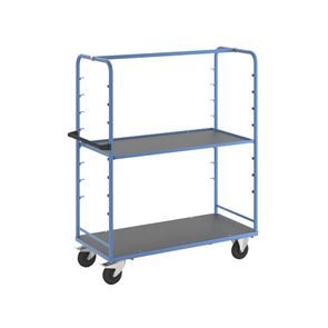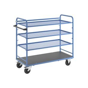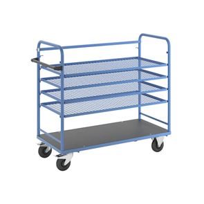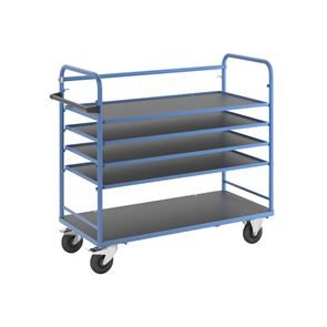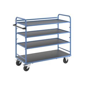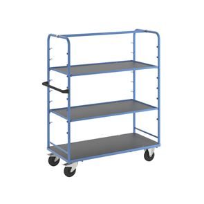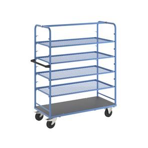 Hyllvagn Grotte, för 8 hyllplan, inkl. 2 hyllplan. Högkvalitativ pulverlackering i ljusblått RAL 5012. Botten av dekorbelagd MDF-skiva.