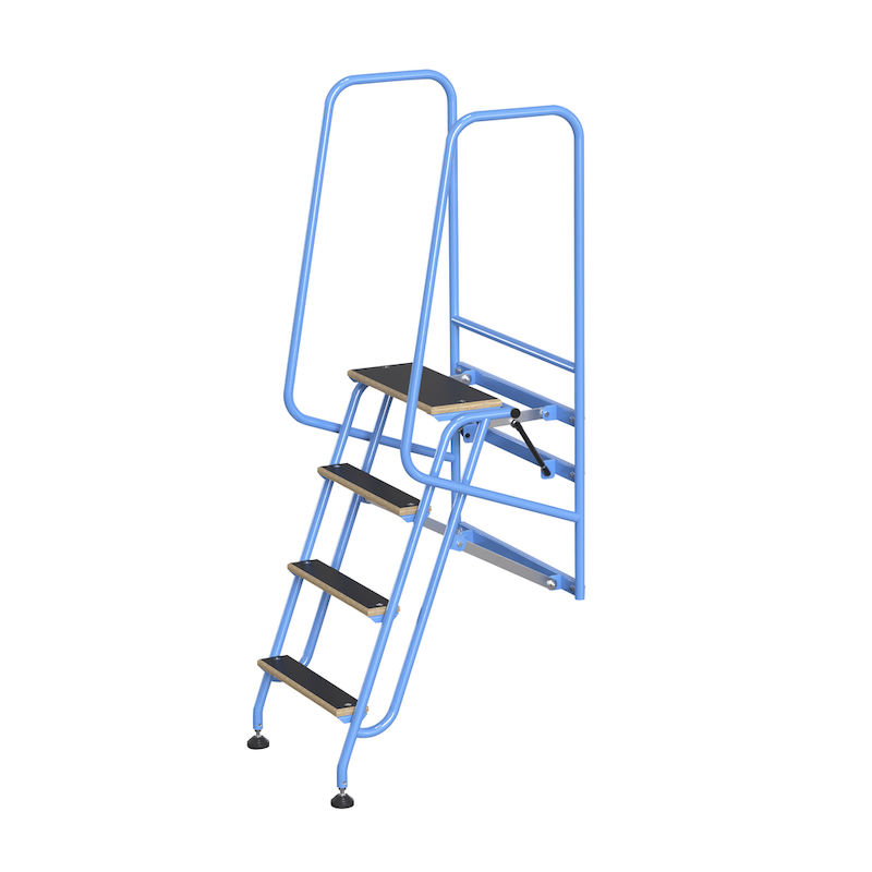 Den utfällbara trappan har ergonomiskt placerade steg av plywoodskiva med behagligt stegavstånd. Vagnen står stabilt på justerbara, ledade gummifötter. När man kliver på det första steget sänks trappan ned via gasfjädrar och vagnen bromsas.