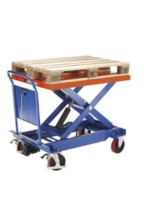 Lyftbordsvagnen har en robust konstruktion och lyfter samt sänker tunga laster säkert och med hög precision. Manövreringen sker smidigt via en fotmanövrerad pumppedal för att lyfta och en steglös handtagsstyrning för att sänka. Robusta saxhjul garanterar lång livslängd och tillförlitlig drift.