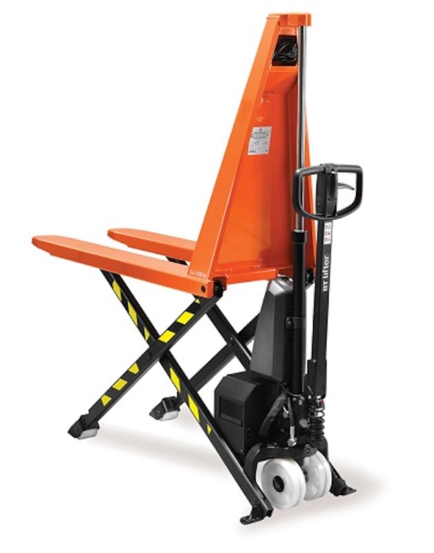 Saxlyftvagn BT HHL100. Svensk kvalitetsvagn som enkelt och bekvämt lyfter sin last med batteridrift. Stödben går i golvet vid ca 230 mm. Lyfttid: 11 sek utan last, 19 sek vid maxlast. Lyftkapacitet 1000 kg. Underhållsfritt batteri 12V/ 54 Ah. Inbyggd laddare. Snabb och enkel laddning via väggkontakt.