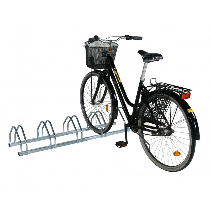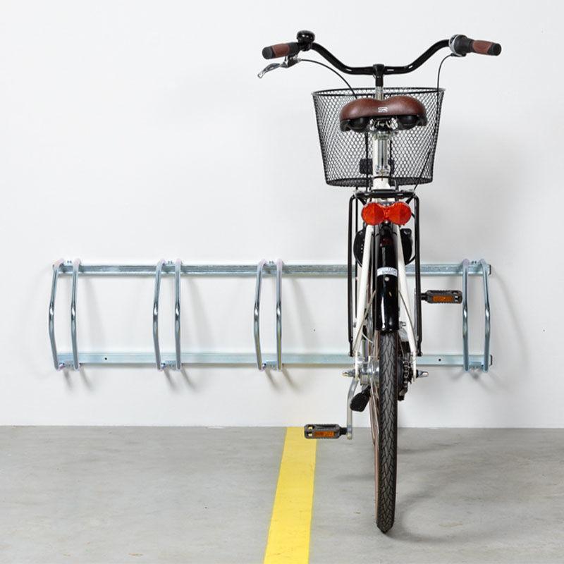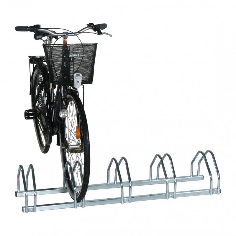 Cykelställ för vägg eller mark, för 5 cyklar. Galvaniserat cykelställ som fungerar lika bra monterat på marken som på väggen! Stället har galvaniserade bågar och fyrkantsrör. Stället levereras omonterat, men monteringen är enkel och smidig.