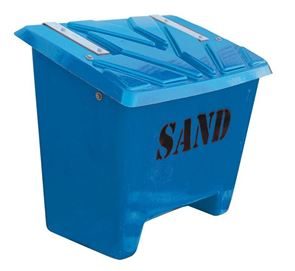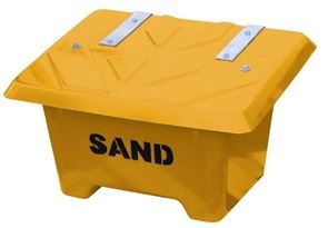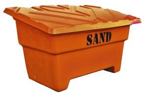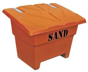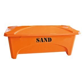 Gatusandlåda Kiruna, 475 l, orange, LxBxH 1760x750x745 mm. Praktisk förvaring av sand och grus tillverkad med vakuuminjicerad polyester som avsevärt förbättrar arbetsmiljön och minskar belastningen på den yttre miljön. Locket är korrugerat vilket ger stabilitet och styrka. Gångjärn, bult och kätting är galvaniserade. Släta in- och utsidor.