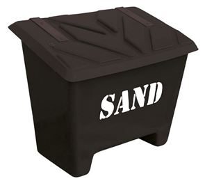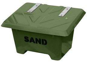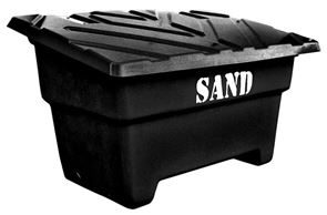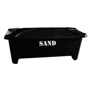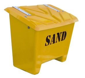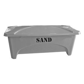 Varje sandlåda har invändigt monterad kätting som stopp för locket i uppfällt läge. Gatusandlådan är staplingsbar och har 10 cm höga ben som gör att gatusandlådan lätt kan flyttas med truck.
