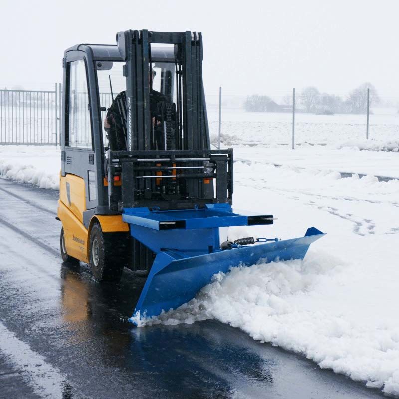Gaffeltunnlarna är placerade över plogen för att sprida trycket så att inte hela belastningen ligger på truckstativet. Truckplogen är ställbar mellan höger och vänster avlägg och är dessutom kraftigt fjädrande för säker hantering.
