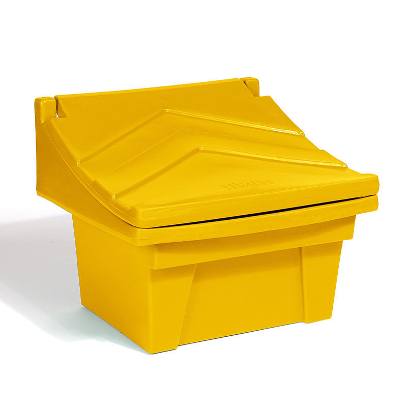 Sandbehållare av polyeten, volym ca 100 l, gul. Av robust och stabil polyeten (PE) som är stryktålig och rostfri. Låg egenvikt samt stapelbar – sparar plats vid transport och lagring. UV-stabiliserad polyeten vilket gör att den behåller sin färg längre. Inga metalldelar, därför lätt att hantera och rostar inte. Med ändamålsenligt profilerat och tätat lock för snabb regnvattenavrinning och skydd mot inträngande vatten. Kan transporteras med gaffeltruck. Tomma behållare kan transporteras och lagras på liten yta. Finns i volym från 50 till 300 liter.