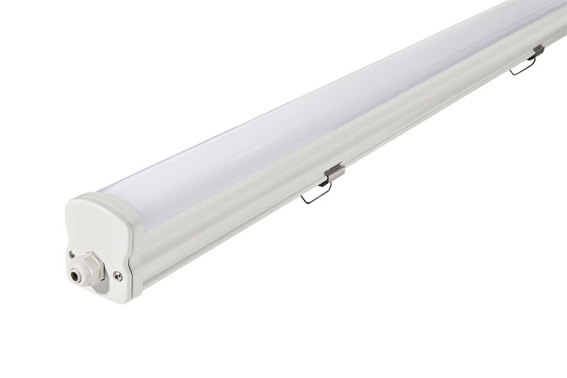 LED-lysrörsarmatur Vattentät IP65 Birger, 4200 lm, 30 W, 4000 K, LxBxH 1250 x 63 x 75 mm. Genomkopplingsbar LED-armatur för fuktiga utrymmen både inomhus och utomhus. Snabb och enkel montering i tak eller på vägg. Monteringsklämmor medföljer. Armaturen kan fästas längs hela sin längd med befintliga borrhål. Förkopplingsdonet är integrerat i takarmaturen. Den släta ytan minimerar smutsansamling och är lätt att rengöra. Armaturen är dammtät, skyddad mot sprutvattentryck och slagtålig upp till 5 J. Lång livslängd, högt ljusflöde, god färgåtergivning, bred ljusspridning och flimmerfritt ljus. Låg underhållsnivå och upp till 60 % energibesparing jämfört med traditionella armaturer för fuktiga utrymmen. Slagtålig och godkänd för användning i IFS-certifierade områden. Livslängd