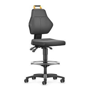 Arbetsstol Valdis, PU-skum, låg med glidfötter. Arbetsstol Valdis är en praktisk och funktionell arbetsstol för alla arbetsområden i en industriell miljö.