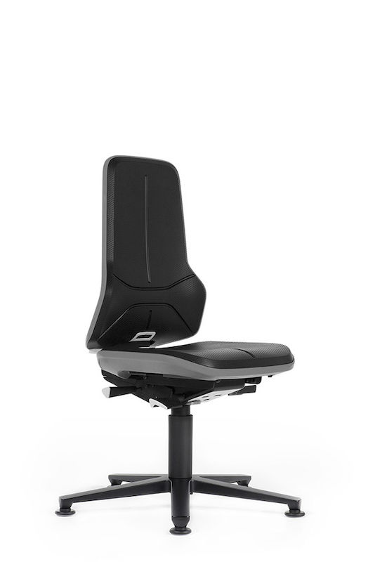 Arbetsstol med synkrongunga och ergonomipaket. Höjdinställning med gasfjäder från 450–620 mm. Svart kryssfot i aluminium med hjul. Fotens diameter är 700 mm. Inställbar sitsvinkel 0 till +9°.