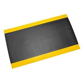 Arbetsplatsmatta Senso Coin, B 1200 mm, svart, gul kant, hel rulle 18,3 m. Senso Coin isolerar mot kalla betonggolv samtidigt som den ger en viss ljuddämpning. Tillverkad med en extra slitstark mönstrad yta av helgjuten vinyl som förlänger livslängden på mattan. Lätt att anpassa själv med vanlig mattkniv. Svart med tydligt markerade gula sidor. Mattan finns i olika bredder.