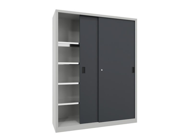 Det här funktionella metallskåpet kombinerar platsbesparande design med hållbar kvalitet och skapar därmed tillförlitlig ordning i professionella arbetsmiljöer. I synnerhet på platser där utrymmet måste utnyttjas effektivt är skjutdörrsskåpet en genomtänkt och stabil lösning.