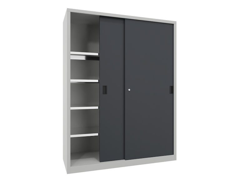 Det här funktionella metallskåpet kombinerar platsbesparande design med hållbar kvalitet och skapar därmed tillförlitlig ordning i professionella arbetsmiljöer. I synnerhet på platser där utrymmet måste utnyttjas effektivt är skjutdörrsskåpet en genomtänkt och stabil lösning.