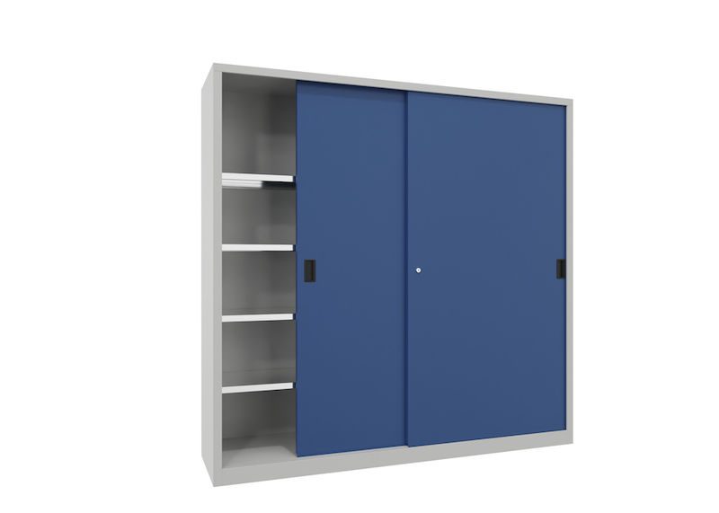 Det här funktionella metallskåpet kombinerar platsbesparande design med hållbar kvalitet och skapar därmed tillförlitlig ordning i professionella arbetsmiljöer. I synnerhet på platser där utrymmet måste utnyttjas effektivt är skjutdörrsskåpet en genomtänkt och stabil lösning.