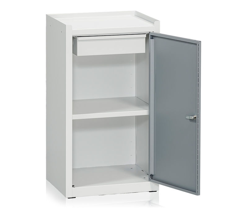 Verktygsskåp Allanit, 900x500x450 mm, grå/grå. Komplett helsvetsat verktygsskåp o plåt med ett flyttbart hyllplan och en utdragbar låda högst upp i skåpet.