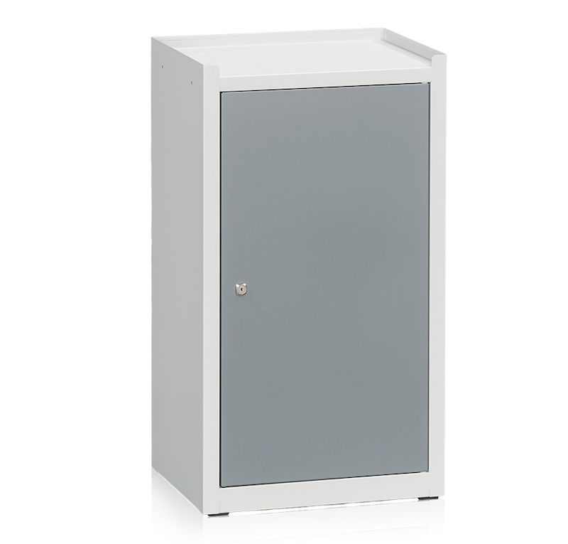 Avlastningsplan med raskant på ovansida. Stommen i ljusgrå och dörren i mörkgrå färg.