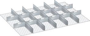 Avdelarsats till Verktygshurts Lista, H 200 mm, LxB 1023x725 mm. Dela upp verktygslådan i små behändiga fack. Komplett sats med avdelare i plåt till Lista verktygshurtsar. Finns i samtliga lådhöjder.