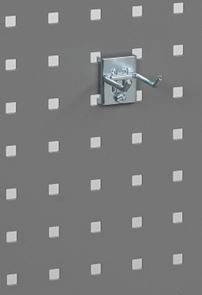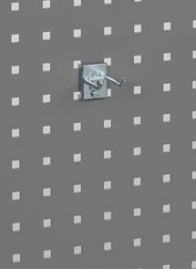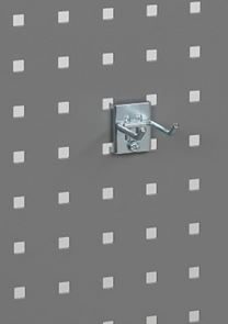 Dubbelkrok Myling, LxB 150x25 mm, Ø 5 mm, 5 st/fp. Passar på verktygspaneler med fyrkantshål 9 mm och centrumavstånd 38 mm. Alla krokar är tillverkade i förzinkat stål.