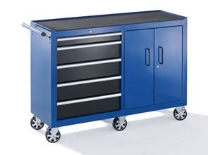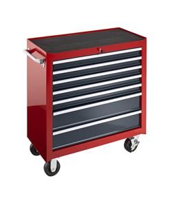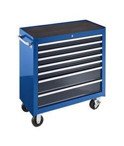 Verktygsvagn Arne, HxBxD 995 x 680 x 458 mm, 7 lådor, blå. Stabil, pulverlackerad stålkonstruktion. Låda utdragbar till 100% på kullagrade teleskopskenor. Antracitgrå. Handtag med märkningsmöjlighet, inklusive pappersremsa och transparent skydd.